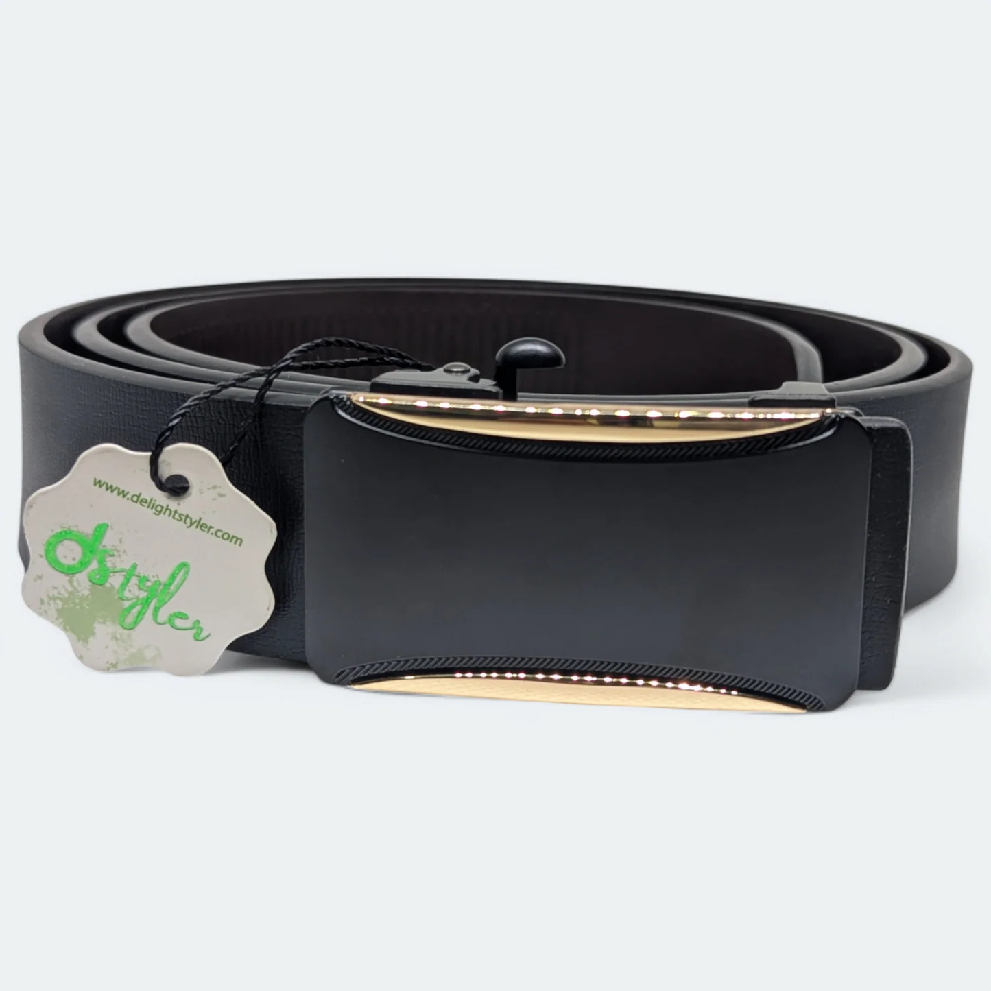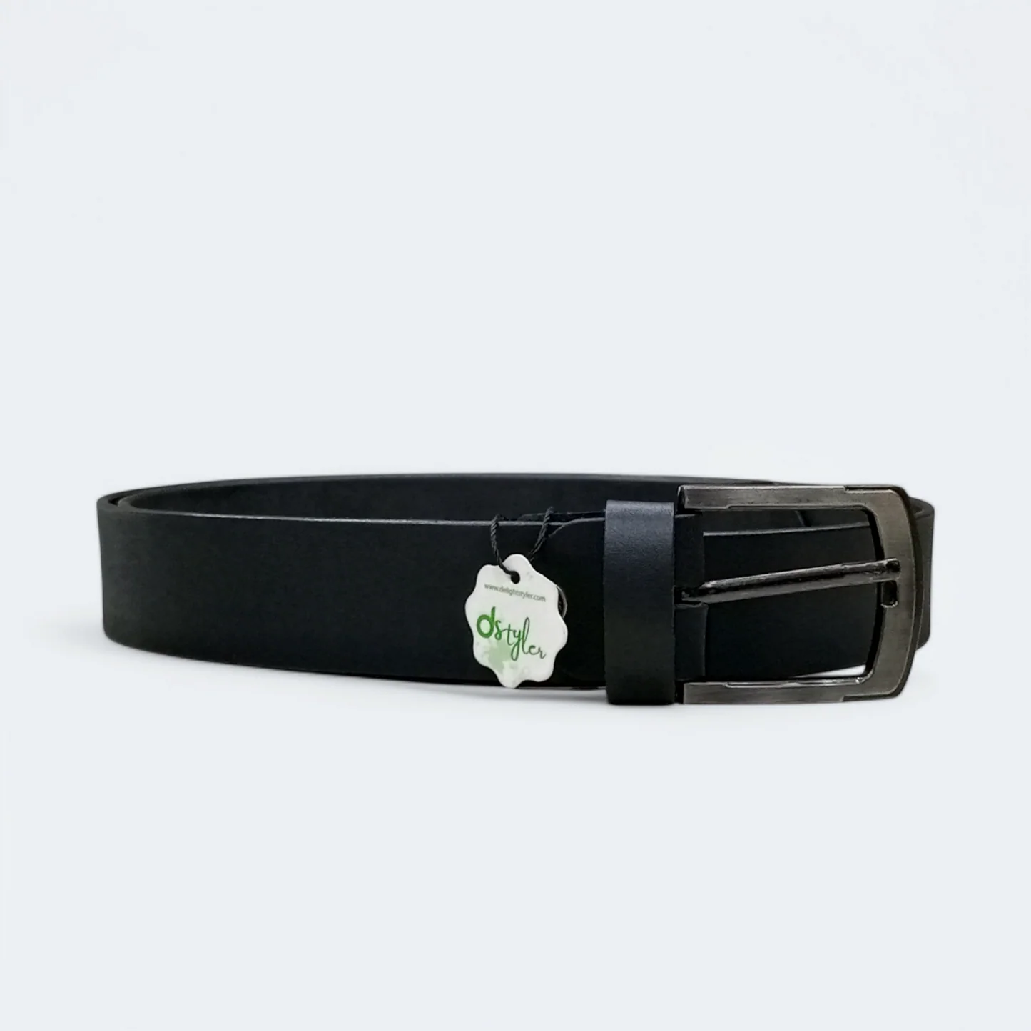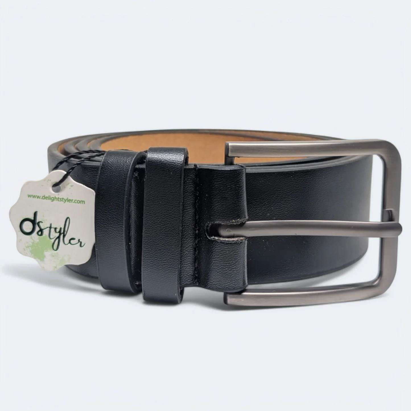 حزام رجالي من الجلد الطبيعي 100٪ مع شعار D Styler – لون أسود