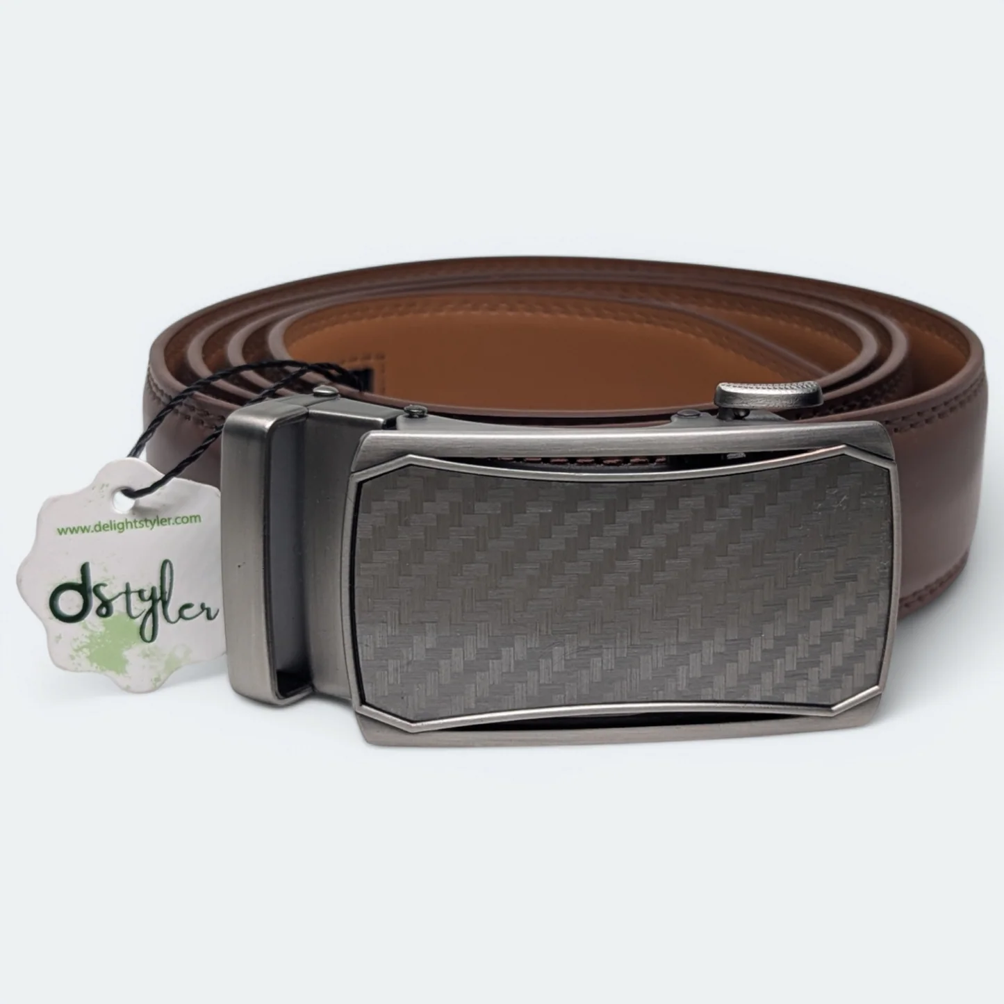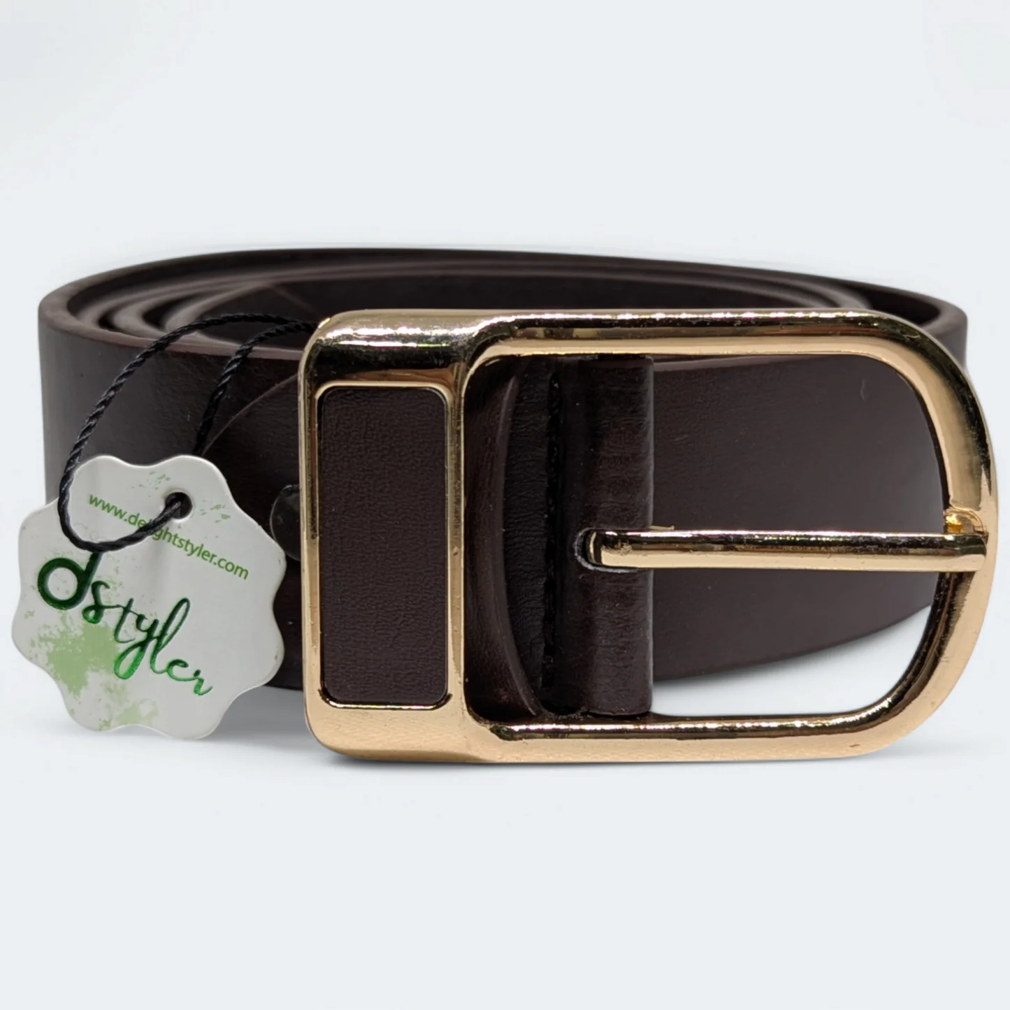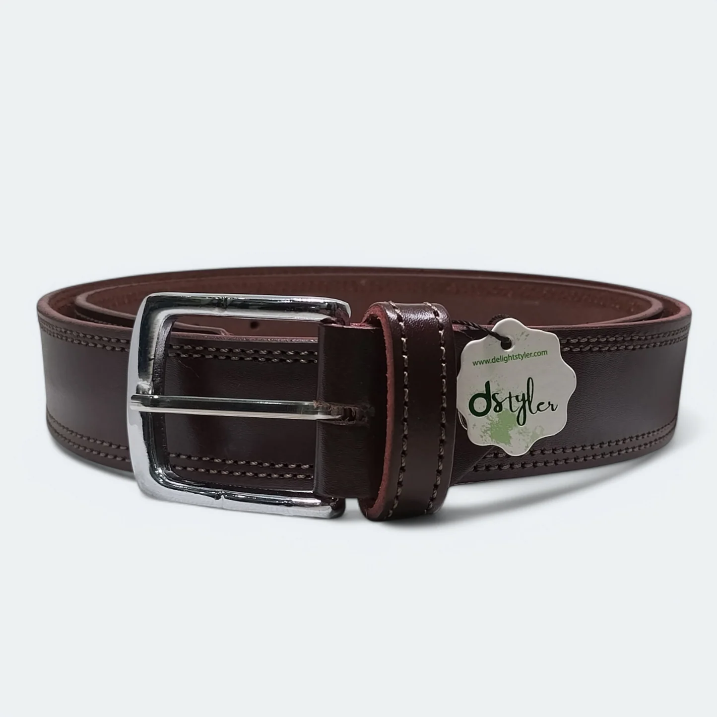 حزام رجالي من الجلد الطبيعي 100٪ مع شعار D Styler – لون بني داكن