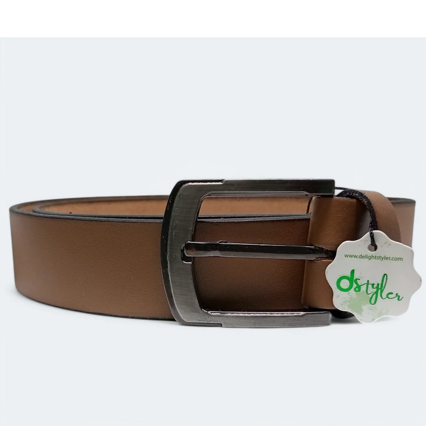 حزام رجالي من الجلد الطبيعي 100٪ مع شعار D Styler – لون بني فاتح