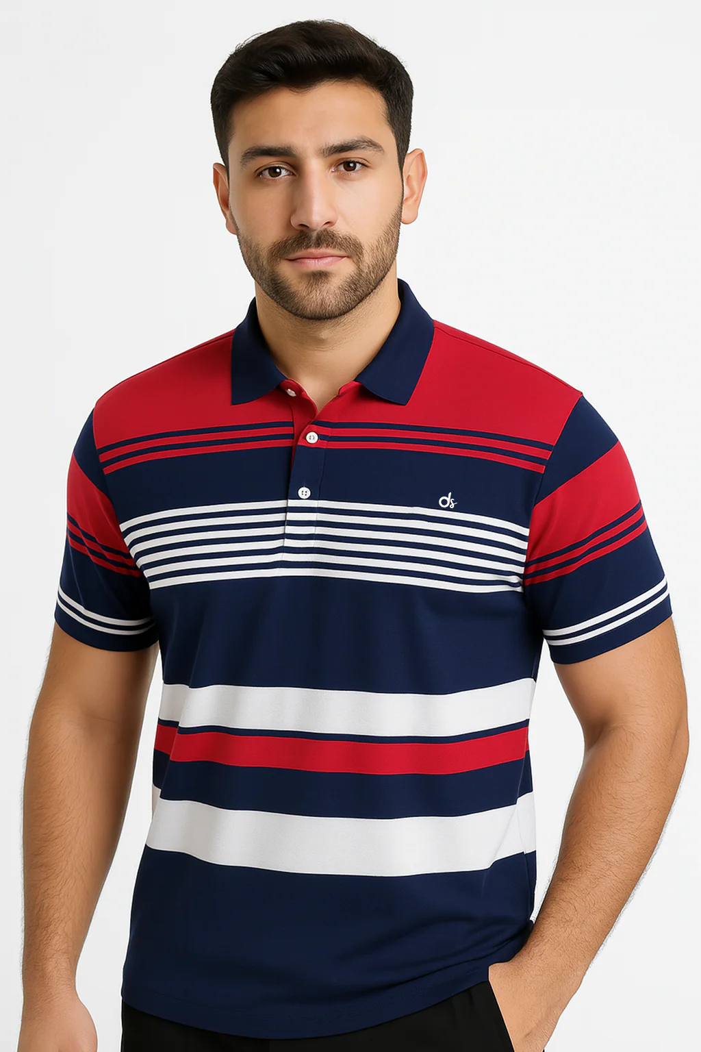 بولو رجالي بأكمام طويلة – مخطط أحمر/كحلي