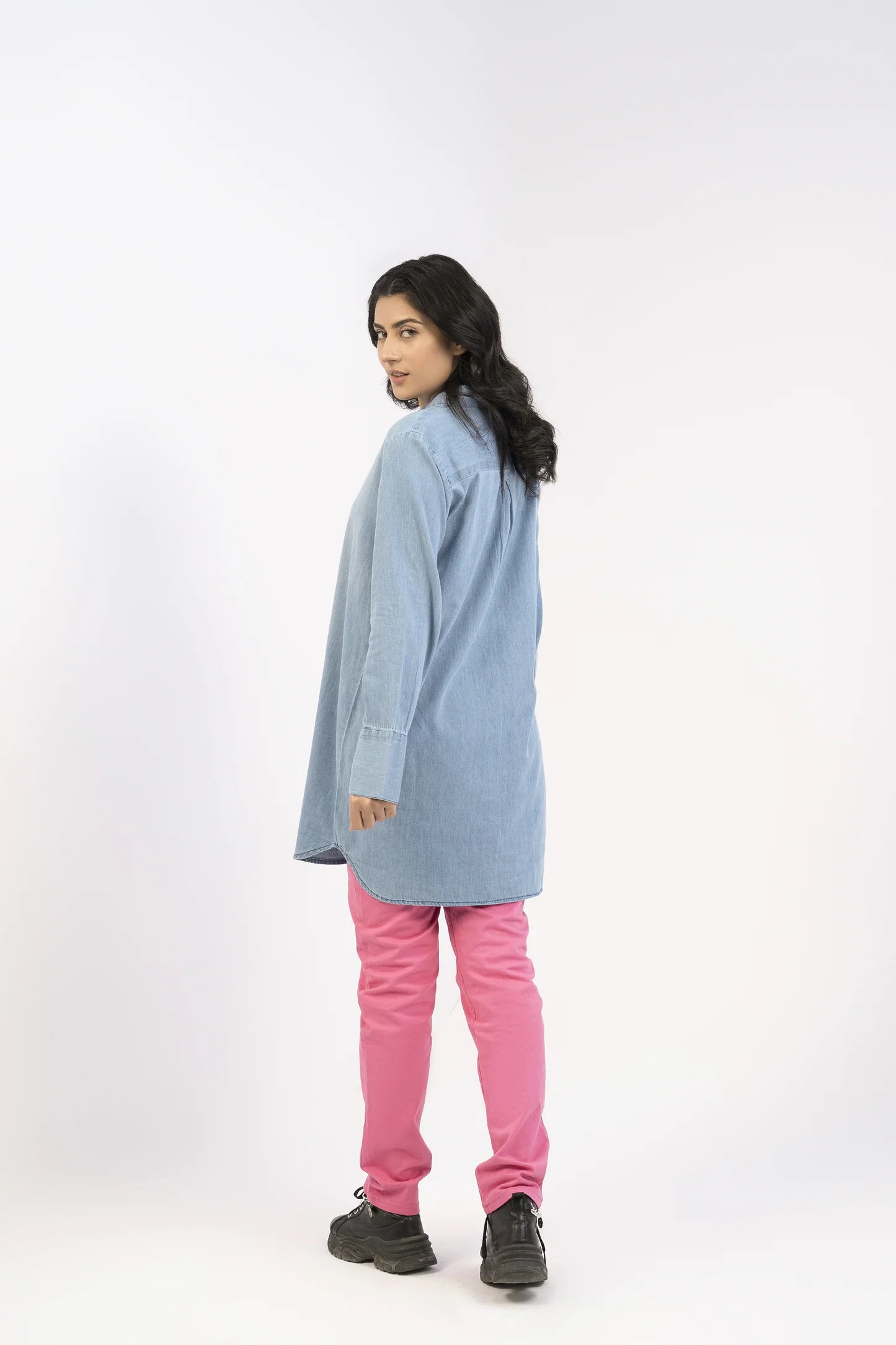 قميص جينز نسائي طويل بدرجة فاتحة يتميز بقصّة مريحة وانسيابية مع تصميم كلاسيكي بأزرار أمامية. مصنوع من دينم ناعم ومتين يجمع بين الراحة والأناقة. يأتي بطول أطول قليلًا وقصّة واسعة بشكل أنيق، ما يجعله مثاليًا للتنسيق مع طبقات أخرى أو لارتدائه بمفرده. تضفي الدرجة الفاتحة مظهرًا منعشًا وخالدًا يناسب الخروجات الكاجوال أو تنسيقه مع الإكسسوارات لإطلالة أكثر أناقة. قطعة أساسية متعددة الاستخدامات لا غنى عنها في خزانة ملابسك.